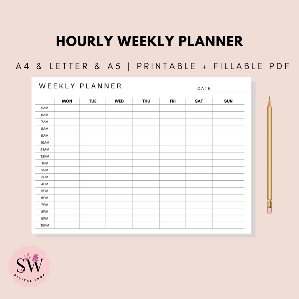 Hourly Weekly Planner Printable - Instant Download